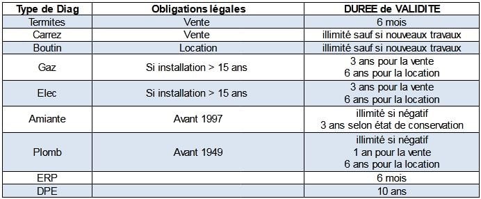 VALIDITÉ D'UN DIAGNOSTIC IMMOBILIER